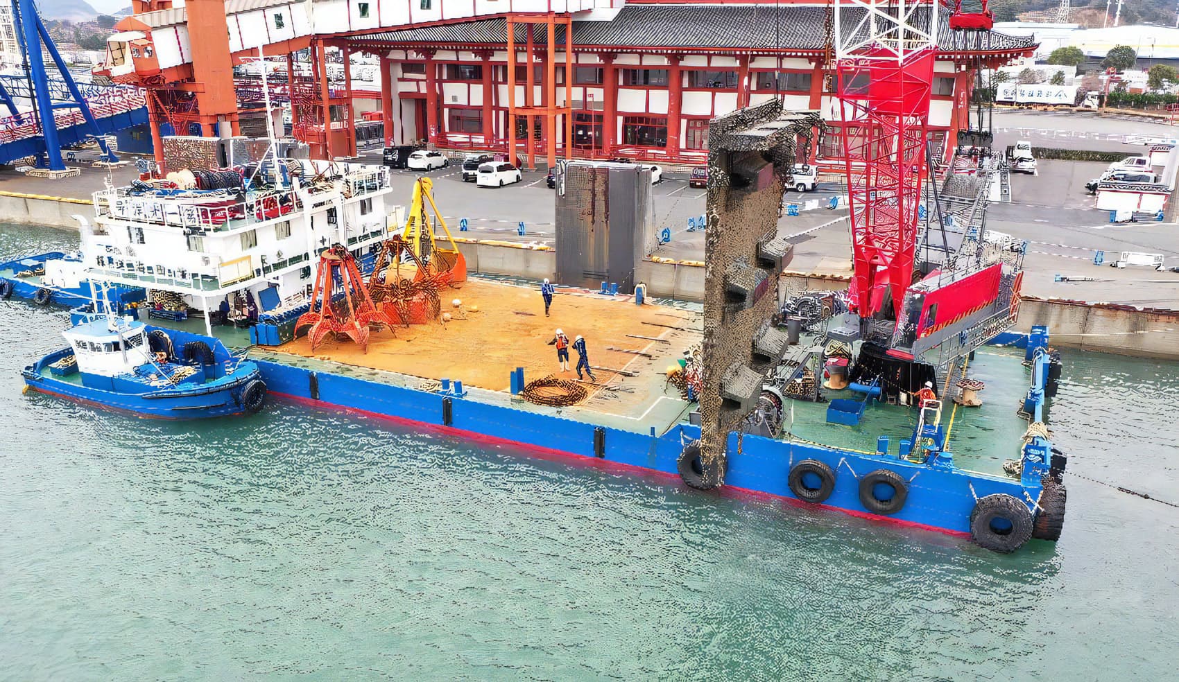 港湾土木工事は、自然災害から町を守る護岸工事や港をより使いやすく整備するなど地域の暮らしに密接した仕事です。 海上での工事は天候に左右され、スケジュール通りの進行やスムーズな作業が困難なこともありますが、大きな工事が無事に終えられた時の喜びはとても大きいです。